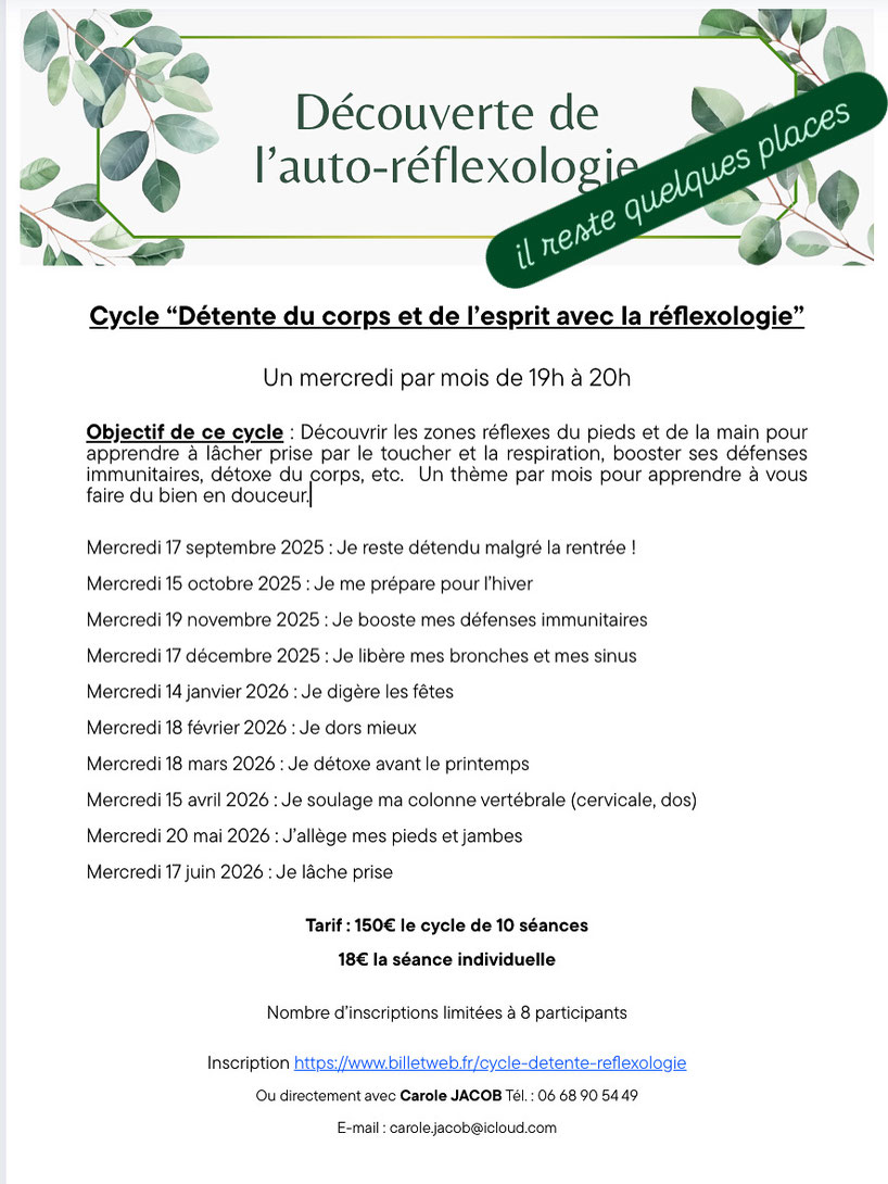 Tout en douceur, j'irai retirer ces "verrous" qui s'accumulent dans notre tête pour permettre au corps une détente et un lâcher prise.